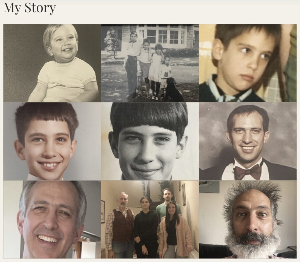People buy from people. Sam has a fascinating life (he even runs a local B&B). I built an about page featuring a clean, nine square grid of photos charting his life. This grid breaks up the heavy text and lets visitors instantly connect with the man behind the microphone.
