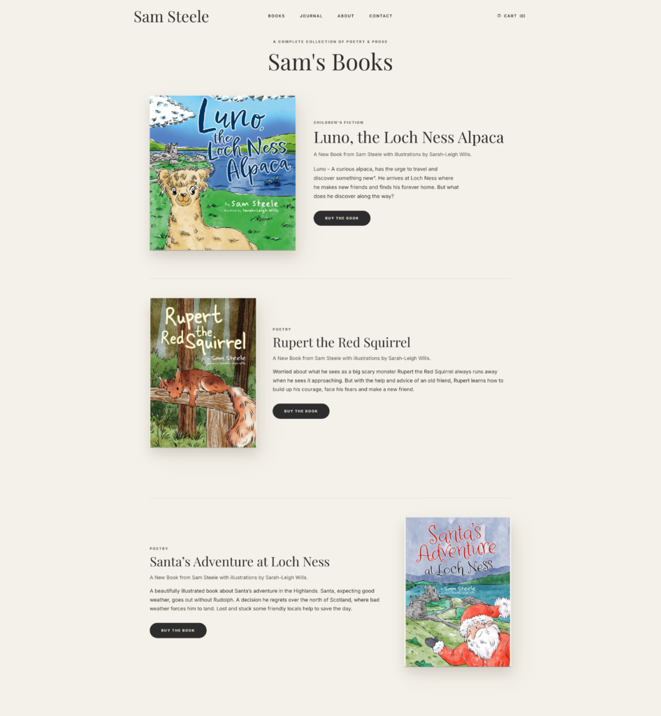 This Web Design Case Study explores the creation of a digital sanctuary for Sam Steele, a prominent Highland poet and children’s author. My goal was to build a centralised, professional platform that showcases his books and high-quality audio recordings in a clean, modern environment.