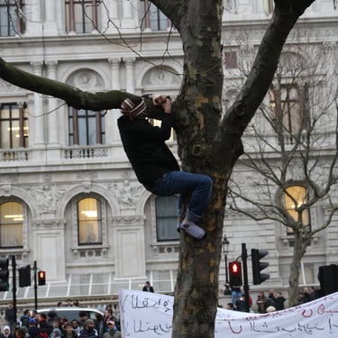 My personal journey during the uprising started in London, where I worked a 9-5 office job. As soon as I heard of the protests in front of the Libyan embassy, I made it a point to go after work. At one point, I even worked through my lunch break, just so I could leave an hour early. I, thank God, had a very understanding manager. At first, I went as a spectator and participant. Very quickly though, I decided to take my camera with me to document what was, by all measurements, a monumental time for Libyans everywhere.